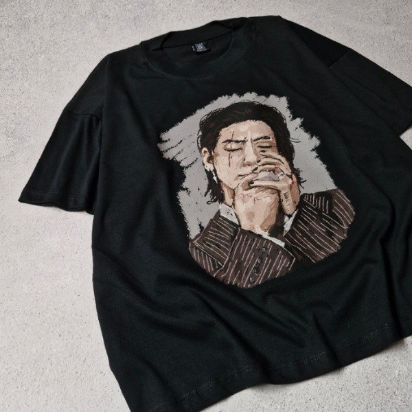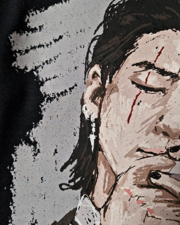 Hecha con el más suave algodón color negro, cuello ancho para más facha. Estampa al frente hecha con DTF, remera oversize, boxyfit (cuadrada)